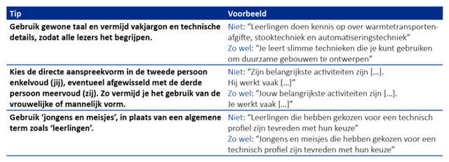 Bekijk ook de checklist en voorbeelden van aansprekende teksten en beelden