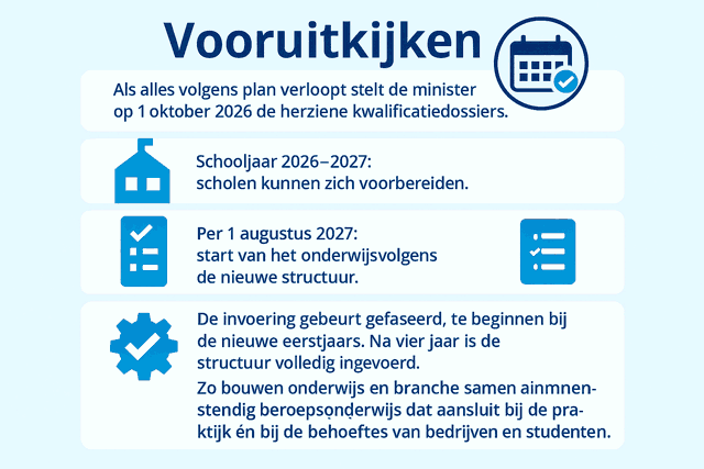 De verwachting is dat de nieuwe structuur lang mee kan en dat je veranderingen kunt opvangen in de contextprofielen. Zo bouwen onderwijs en branche samen aan toekomstbestendig beroepsonderwijs dat aansluit bij de praktijk én bij de behoeftes van bedrijven én studenten.