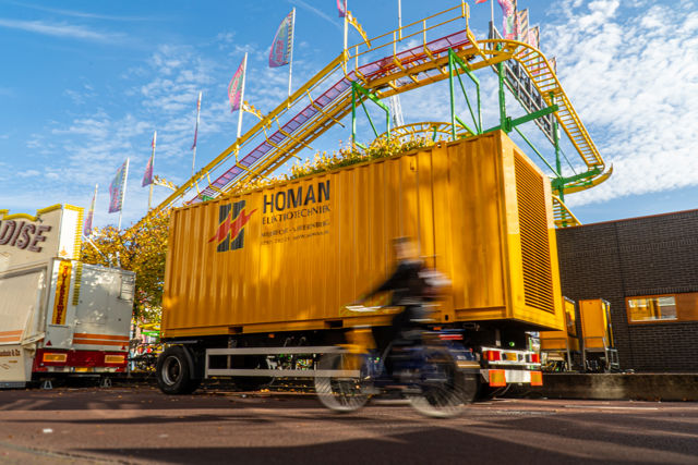 “Duurzaamheid is een speerpunt binnen ons bedrijf. Voor onze aggregaten zijn we bijvoorbeeld overgestapt van de milieubelastende brandstof B7 naar HVO50. Dat is een duurdere brandstof maar 80% minder milieubelastend. Onze aggregaten reageren goed, zijn betrouwbaarder en hebben minder onderhoud nodig. Ook denken we al jaren met onze klanten mee over het verbruik. We hebben systemen waarmee we op afstand de feestverlichting aan en uit kunnen zetten, zodat het niet onnodig lang brandt. Allemaal LED en duurzaam. Andere partijen halen het veel uit het buitenland, wij maken het hier zelf. Scheelt in duurzame voetafdruk.