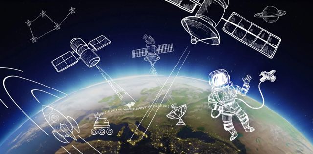 Campagnebeeld Vakkanjers. Missie:Verbeter het leven op aarde met technologieën vanuit de ruimte.