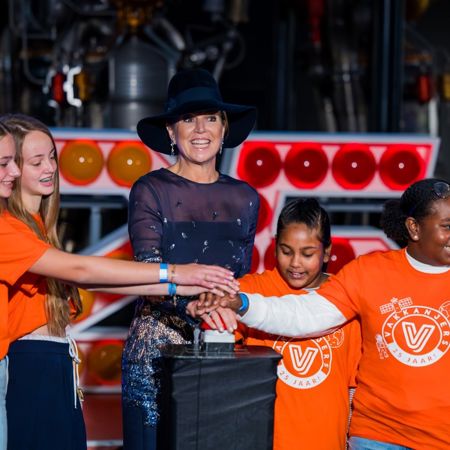 Koningin Máxima ging in een bomvol Space Expo in gesprek met leerlingen uit heel Nederland over hun project en hun ambities. Waar traditioneel nog vooral jongens een technische richting kiezen in het vervolgonderwijs, blijkt uit de recente Monitor van Techniekpact juist een lichte toename van het aantal meisjes dat haar toekomst in een technologisch beroep ziet. Alle reden voor de koningin om het officiële startsein van het jubileumjaar van Vakkanjers samen met 4 meiden te geven. André Kuipers, ambassadeur van Vakkanjers, onderschrijft het belang van technologieonderwijs op jonge leeftijd: “Met technologie kun je de wereld veranderen. Of je nu een satelliet bouwt of een robot ontwerpt, alles begint met nieuwsgierig zijn en dingen willen ontdekken. Met de projecten van Vakkanjers ontdekken jongens én meisjes spelenderwijs hoe leuk en belangrijk techniek is. Daar kun je niet vroeg genoeg mee beginnen.”