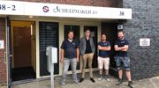 Souhail Aghattas werkte bij een koeriersdienst. Nu volgt hij via Onze Joost een leerwerktraject tot elektromonteur bij elektrotechnisch installatiebedrijf Scheepmaker. Foto: vlnr Duco van Veeren, Bart Dolstra, Souhail Aghattas en Cas van Veeren.